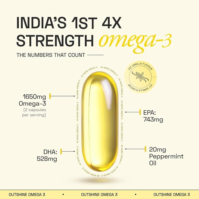 Ace Blend Outshine Omega 3 Fish Oil Capsules (60 Softgels) | 1650 Mg with 743 EPA & 528 DHA | 2 capsules for 4X Strength | No Fishy Burps | Supports Heart, Brain, Joints, Eye Health
