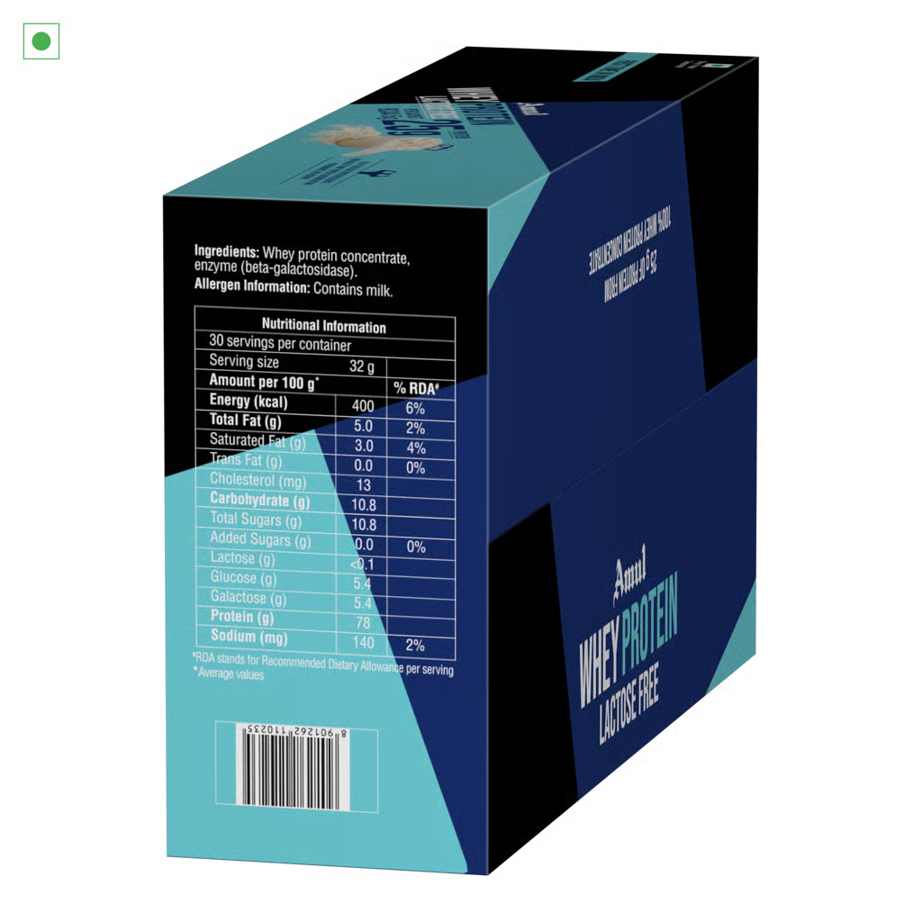 For the first time in India, Amul presents best quality lactose free plain whey protein in single serve sachet which provides 25 g whey protein (5 g BCAA).