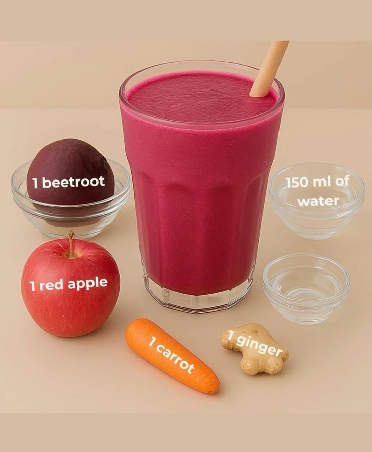 A vibrant blend of beetroot, apple, carrot, and ginger, delivering a refreshing burst of antioxidants, vitamins, and anti-inflammatory goodness in every sip. Perfect for boosting energy and detoxifying the body.