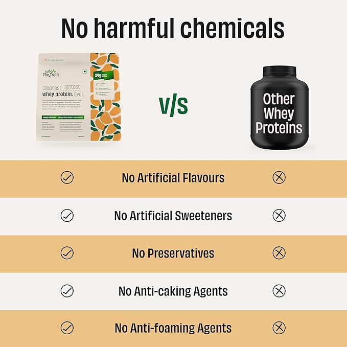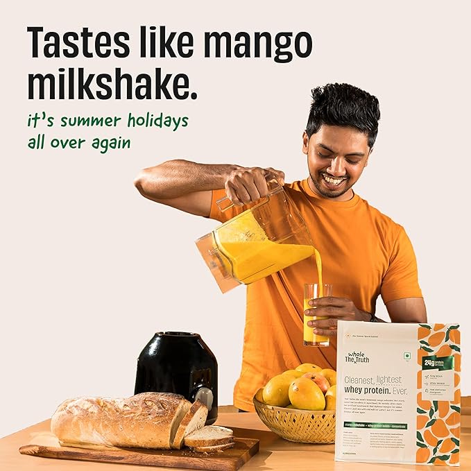 The Whole Truth Whey Protein Isolate+Concentrate Mango Milkshake 1kg (2.2 lbs) I 24g Protein/Scoop I 100% Authentic Whey I Made with Real Alphonso Mangoes | Clean, Light & Easy to Digest