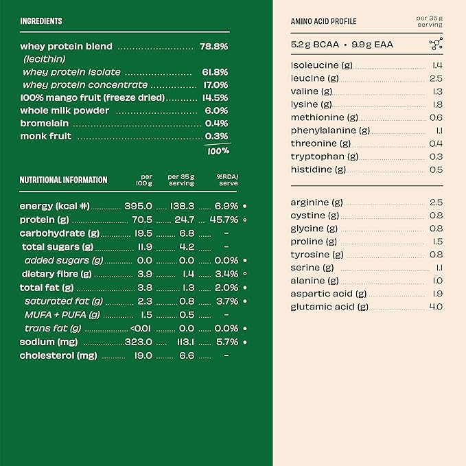 | Flavour | Mango Milkshake 24g Whey Protein |